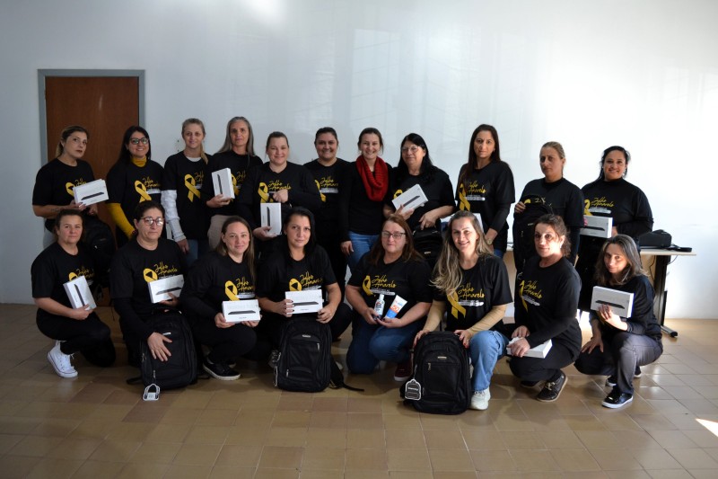 Durante o encontro, foram entregues 18 kits com mochila, protetor solar e repelente, além de 17 tablets configurados com sistema próprio de atendimento domiciliar. Os recursos foram adquiridos pela gestão municipal.