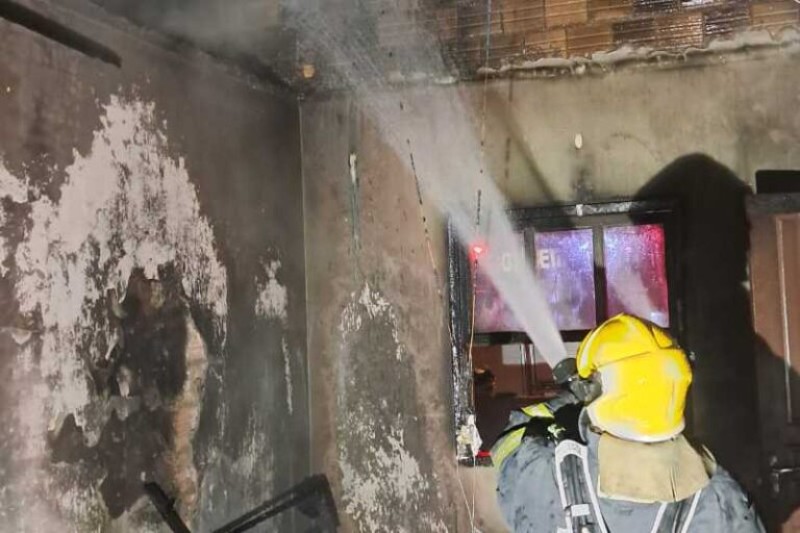 Segundo os bombeiros, o fogo atingiu uma residência unifamiliar de alvenaria, com aproximadamente 45 m². As chamas estavam concentradas na sala conjugada com a cozinha e já se encontravam em fase de diminuição quando a guarnição chegou ao local.