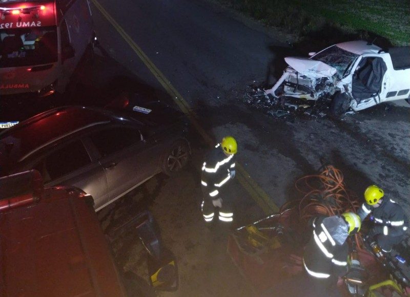 Um homem de 23 anos foi resgatado pelo Corpo de Bombeiros após ficar preso às ferragens em uma colisão frontal entre dois veículos, na noite de sábado (14), na Rodovia Otávio Dassoler, bairro São Simão.
