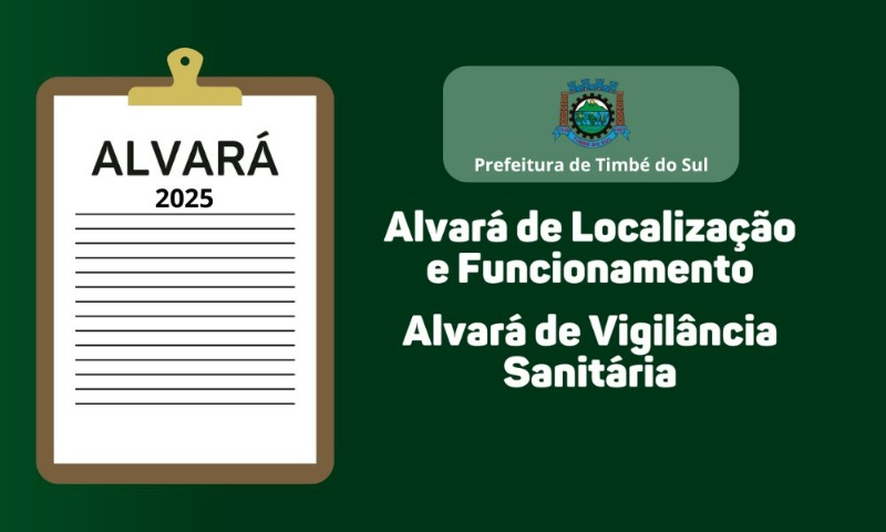 As taxas de localização, taxa de funcionamento do alvará e taxa do alvará sanitário de Timbé do Sul, do ano de 2025, estão disponíveis no site da Prefeitura (CLIQUE AQUI) – Os boletos podem ser encontrados na aba Emissão de Guias de ISS/Alvará.