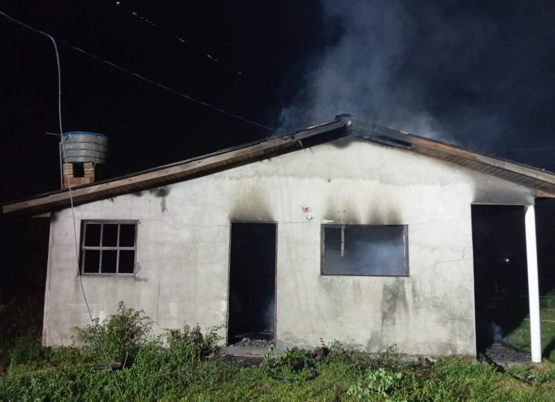 O fogo destruiu uma pequena residência, com cerca de 50 metros quadrados, no bairro Figueirinha, em Balneário Gaivota. A ocorrência, registrada na madrugada de quarta-feira (26), por volta das 4h, foi atendida pela guarnição do Corpo de Bombeiros de Sombrio.