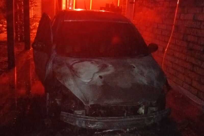 Fogo atingiu um Fiat Siena estacionado em garagem; moradores conseguiram controlar as chamas antes da chegada da guarnição