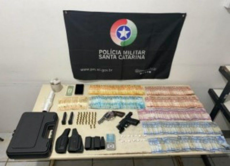 Conforme a PM, em posse do jovem, foram encontrados armas, dinheiro e drogas, prontas para serem comercializadas. “Um revólver calibre .38, marca Rossi, municiado com duas munições; uma pistola G2C 9mm, marca Taurus, com dois carregadores contendo 35 munições; R$ 4.240 em espécie e 15 buchas de cocaína, totalizando 7,5 gramas, prontas para venda”, informou o 19ºBPM.