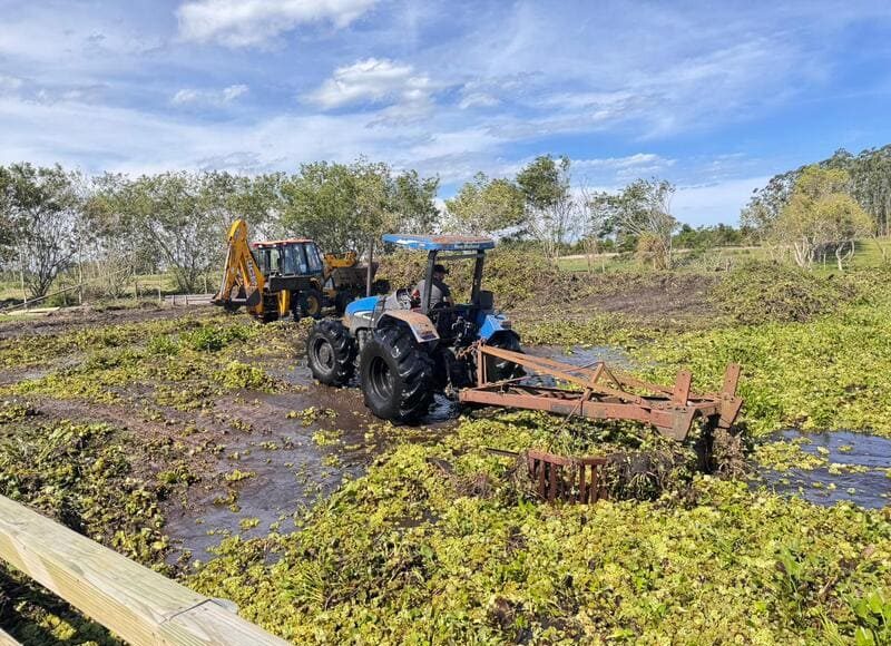 Os serviços estão sendo executados com o apoio da máquina anfíbia da Secretaria Municipal de Agricultura e Pesca, sob a coordenação do secretário Anderson Joaquim dos Santos. A operação contempla a retirada de resíduos sólidos, remoção de aguapés, limpeza das margens e a manutenção do entorno da lagoa, contribuindo diretamente para a conservação do ecossistema local.