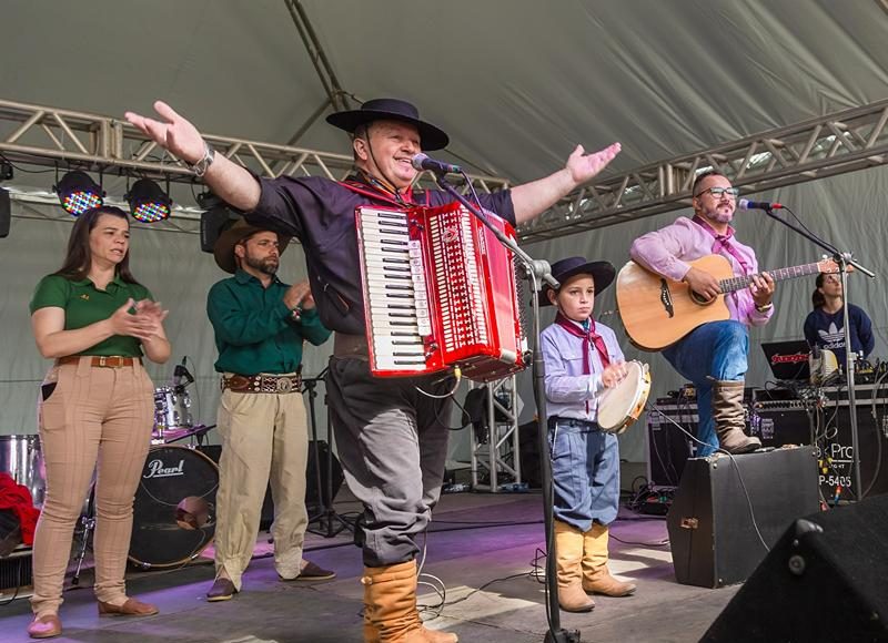 No domingo (14), o público poderá acompanhar o Concurso Assador Farroupilha, com início às 10h, que reunirá talentos da região em uma disputa com costela e carne sem osso como itens obrigatórios. Às 11h, será celebrada a Missa Crioula pelo padre Leonir, com participação do Coral Antônio Joaquim Pereira. À tarde, às 15h, ocorre o encontro da Terceira Idade Gaudéria, com show de Sassá. A noite encerra com baile da banda Bem Baileiro, às 22h.