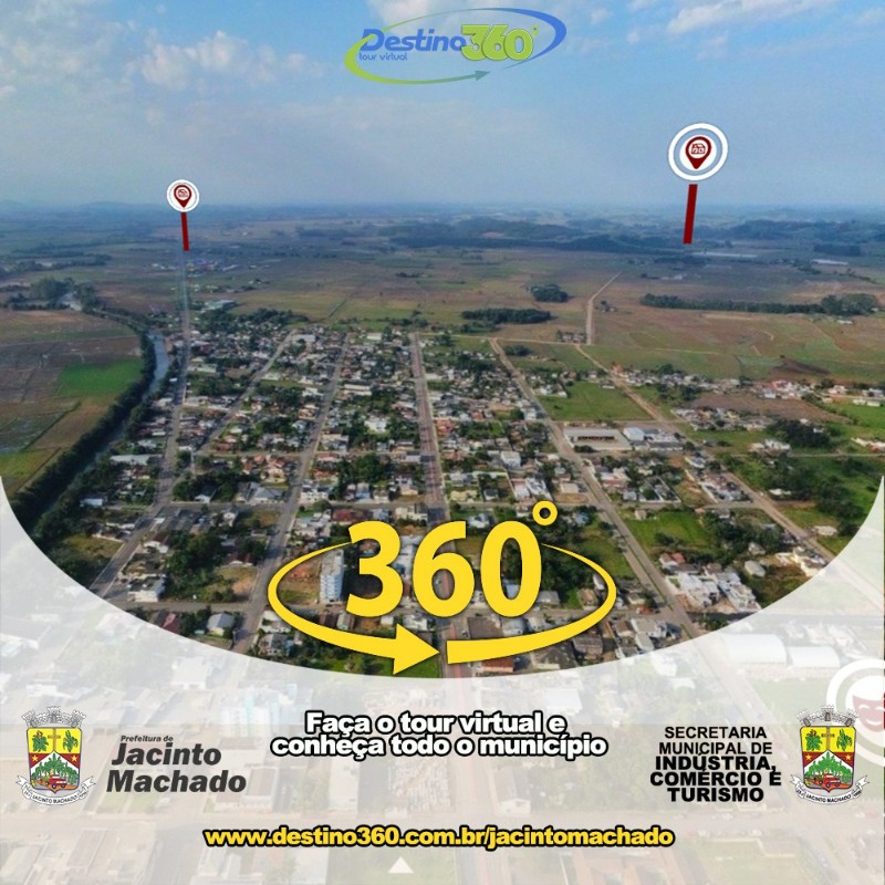 A Prefeitura de Jacinto Machado anunciou o lançamento do mapeamento digital em 360º do município. A ferramenta, semelhante ao Google maps, permite que qualquer pessoa com acesso à internet explore bairros, comunidades e pontos turísticos e culturais da cidade. O Tour Virtual 360º já está disponível nos canais de comunicação oficiais da Prefeitura, incluindo o perfil no Instagram e o site oficial.