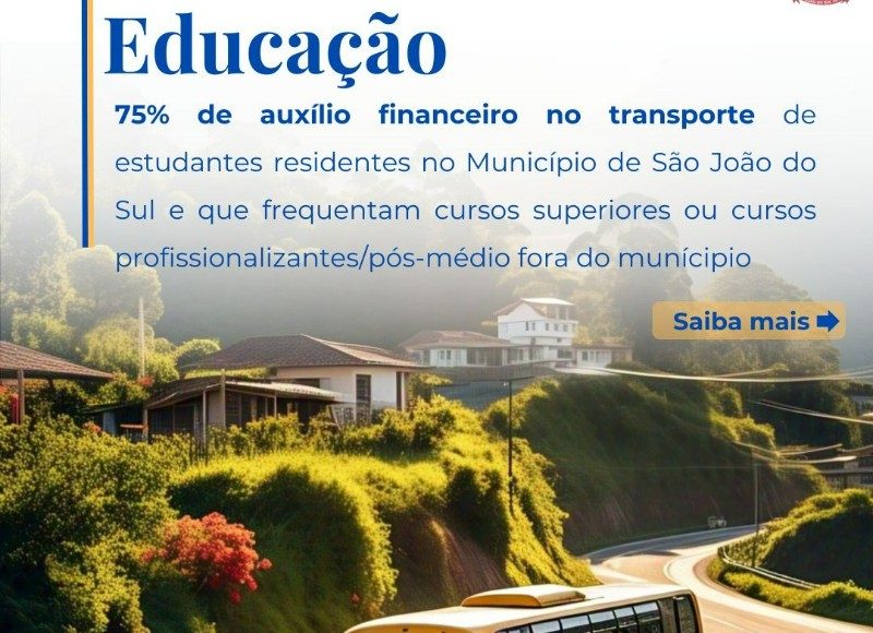 Conforme o decreto municipal nº 007/2025, alunos residentes no município que cursam ensino superior ou profissionalizante/pós-médio fora da cidade terão direito a 75% de auxílio financeiro para transporte escolar.