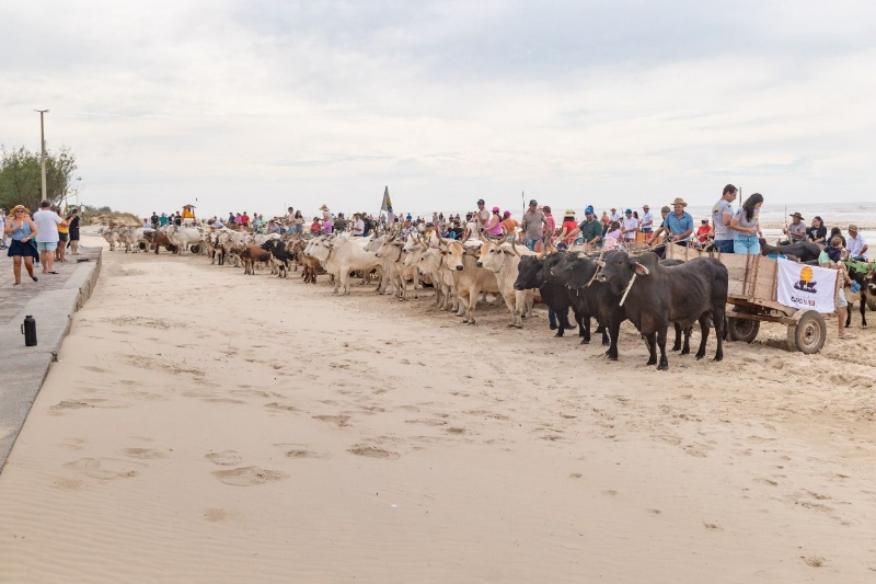 Cerca de 80 carros de boi percorreram dois dias de viagem entre São João do Sul e Passo de Torres, encerrando a temporada de verão na praia Rosa do Mar.
